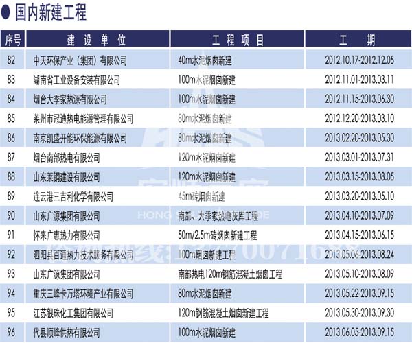 宏順建設工程有限公司是國家批準成立的專業高空作業企業:承攬過(國內.國外)煙囪新建、煙囪防腐、磚煙囪新建、煙囪改造、煙囪維修、煙囪脫硫防腐、煙囪拆除加高、煙囪滑膜等高空作業工程。具有“不搭腳手架 、 不需要停產”施工特點。
